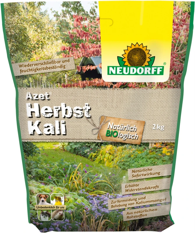 Bei allen Gehölzen und spät blühenden Stauden für eine zusätzliche Kaliumdüngung geeignet. Erhöht die Widerstandsfähigkeit gegen Frost und Trockenheit bei Rasen, Gehölzen und Stauden. Sofort verfügbares Kalium zur schnellen Versorgung. Verbessert den Wasserhaushalt der Pflanzen und führt zu einer gesteigerten Winterhärte