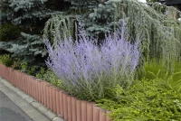 Die Blauraute (Perovskia atriplicifolia) eine aufrechte, ausladende, feintriebige, lockere Gartenpflanze, die, je nach Sorte, Blüten in verschiedenen Farben hervorbringt. An einem sonnigen Standort mit durchlässigem, sandigem Boden erreicht sie gewöhnlich eine Höhe von ca. 1,5 m und wird ca. 1,5 m breit.