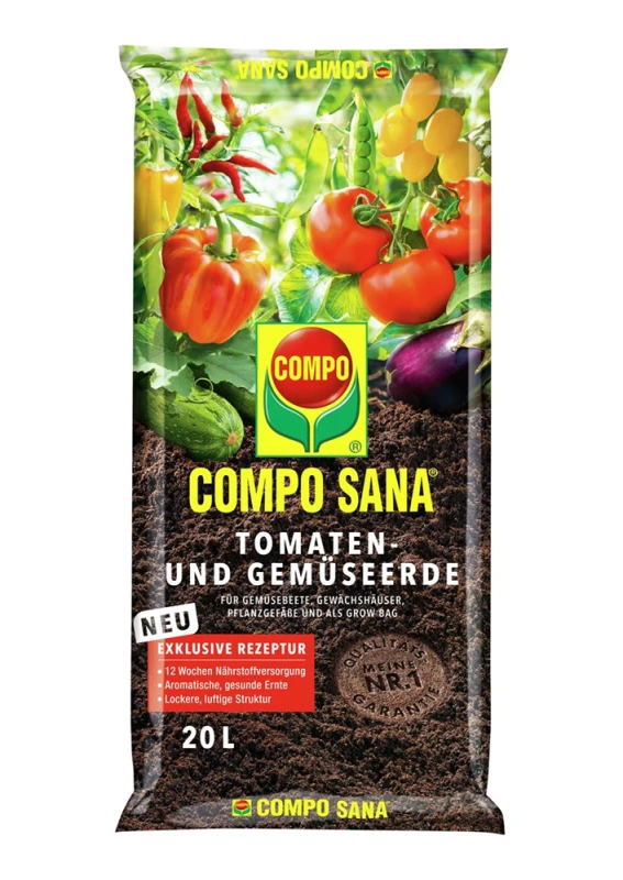 Hochwertige Spezialerde für Tomaten und alle stark zehrenden Gemüsesorten. Der auf die Bedürfnisse der Pflanzen abgestimmte Sofort- und Langzeitdünger gewährleistet eine bis zu 12 Wochen optimale Nährstoffversorgung. Mit COMPO Gärtnerhumus für eine lockere, luftige Struktur und eine gesunde, aromatische Ernte. Anwendung: Grundsätzlich empfiehlt es sich die Blumenerde vor der Verwendung leicht aufzulockern, so dass evtl. vorhandene Verklumpungen oder Verdichtungen nicht mehr gegeben sind.