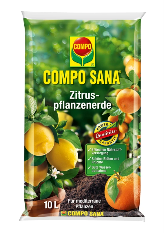 Gebrauchsfertiges Kultursubstrat zum Ein- und Umtopfen von Zitruspflanzen und anderer mediterranen Pflanzen. Nach ca. 12 Wochen ist eine Nachdüngung erforderlich.