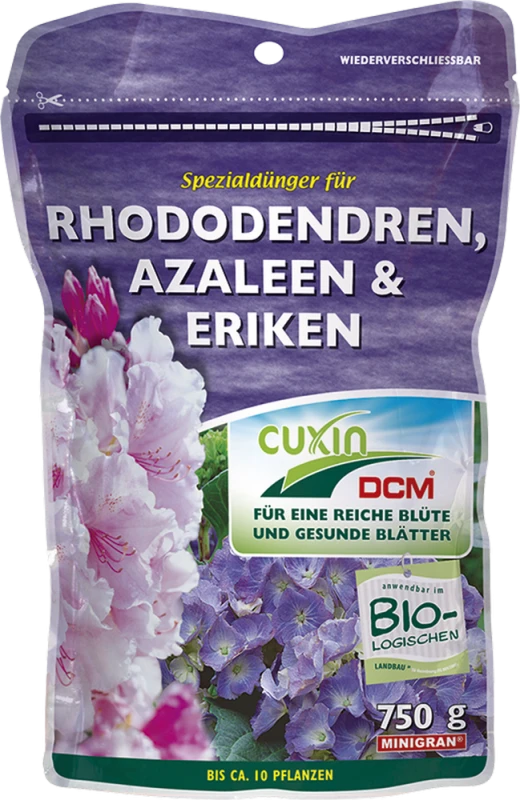 Organisch-mineralischer NPK-Dünger 5-3-6 + 2 MgO + 1 Fe in wasserfester + UV-beständiger Verpackung, mit versauernder Wirkung für eine reiche Blüte und gesunde Blätter. Anwendung: 100 – 150 g/qm.