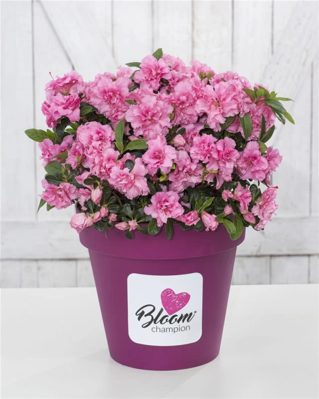 Die Dauerblühende Azalee ‚BloomChampion Pink‘ (Rhododendron obtusum) bringt im April ein wahres Meer aus rosafarbenen Blüten hervor. Dieses aufrecht, gedrungen wachsende Gehölz erreicht gewöhnlich eine Höhe von 0,5 – 1,5 m und eine Breite von 0,5 bis 1,5 m. Ein halbschattiger (bis schattiger) Standort und ein durchlässiger, nährstoffreicher, saurer Boden schaffen optimale Bedingungen für ein gesundes Wachstum. Die Dauerblühende Azalee ‚BloomChampion Pink‘ ist gut frostverträglich.