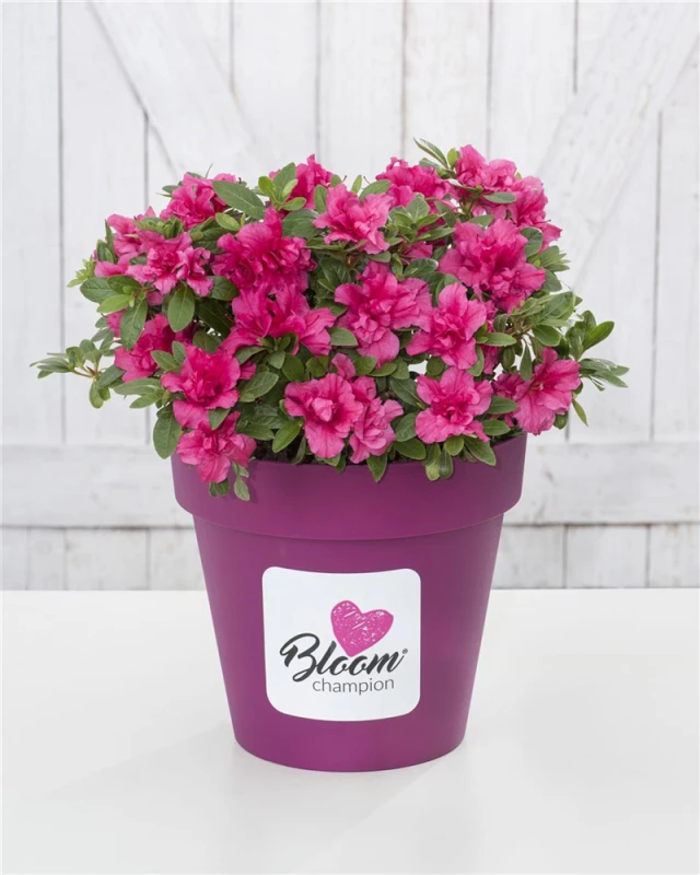 Dauerblühende Azalee ‚BloomChampion Purple‘ ist ein aufrecht und gedrungen wachsender Kleinstrauch. Sie erreicht gewöhnlich eine Höhe von 0,5 – 1,5 m und wird ca. 0,5 – 1,5 m breit.