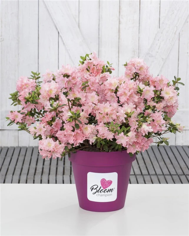 Die Dauerblühende Azalee ‚BloomChampion Salmon‘ weist eine gute Frosthärte auf.