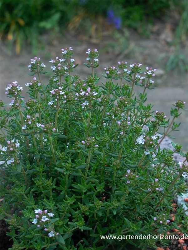 Der Echte Thymian (Thymus vulgaris) ist eine Kräuterpflanze mit einem aromatischen, würzigen Geschmack. Für das optimale Wachstum des Echten Thymians werden ein sonniger Standort und durchlässiger, nährstoffreicher Boden benötigt.