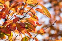 Die sommergrünen Blätter der Felsenbirne Polar Fruits® ‚Western Juneberry‘ sind mittelgrün, eiförmig. Bronzefarbener Austrieb. Felsenbirne Polar Fruits® ‚Western Juneberry‘ zeigt sich leuchtend orange im Herbst.