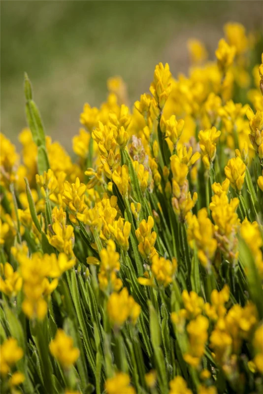 Die goldgelben Blüten des Flügelginster erscheinen in Trauben im Juni.