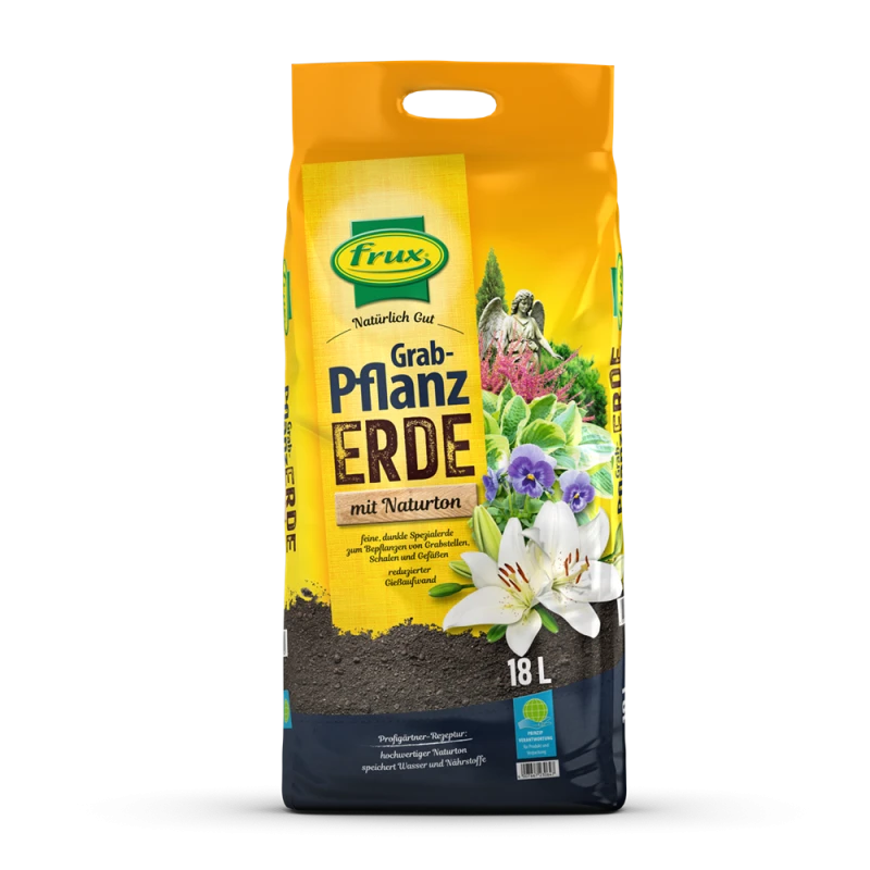 Die frux Grab-Pflanzerde gewährt durch die ausgewogene Versorgung mit Hauptnährstoffen und Spurenelementen ein optimales Wachstum der Grabbepflanzung. Die dunkle, körnige Struktur optimiert das Wasserhaltevermögen und sorgt für eine sehr gute Wiederbenetzbarkeit bei Trockenheit. Der Gießaufwand wird dadurch verringert.