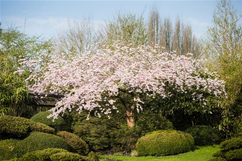 Prunus subhirtella ‚Pendula Rubra‘ ist ein Tiefwurzler.