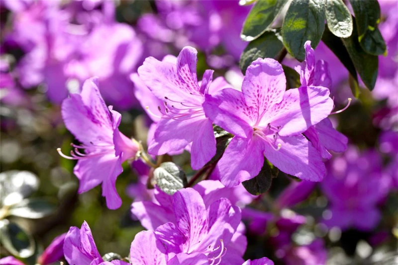Die Japanische Azalee ‚Feenstern‘ (Rhododendron obtusum) bringt von Ende Mai bis Anfang Juni ein wahres Meer aus magentafarbenen bis rosaroten Zeichnung Blüten hervor. Dieses breit, flach, gedrungen wachsende Gehölz erreicht gewöhnlich eine Höhe von 30 – 40 cm und eine Breite von 60 bis 60 cm. Ein halbschattiger (bis schattiger) Standort und ein durchlässiger, nährstoffreicher, saurer Boden schaffen optimale Bedingungen für ein gesundes Wachstum. Die Japanische Azalee ‚Feenstern‘ ist gut frostverträglich.