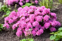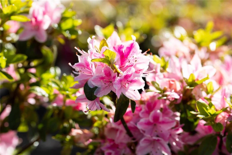 Die Japanische Azalee ‚Kermesina Rose‘ (Rhododendron obtusum) bringt von Ende Mai bis Anfang Juni ein wahres Meer aus rosa-weißen Blüten hervor. Dieses kompakt wachsende Gehölz erreicht gewöhnlich eine Höhe von 50 – 60 cm und eine Breite von 80 bis 90 cm. Ein halbschattiger (bis schattiger) Standort und ein durchlässiger, nährstoffreicher, saurer Boden schaffen optimale Bedingungen für ein gesundes Wachstum. Die Japanische Azalee ‚Kermesina Rose‘ ist gut frostverträglich.