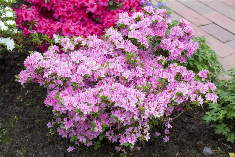 Die Japanische Azalee ‚Kermesina Rose‘ setzt schöne Akzente gemeinsam mit: