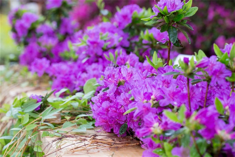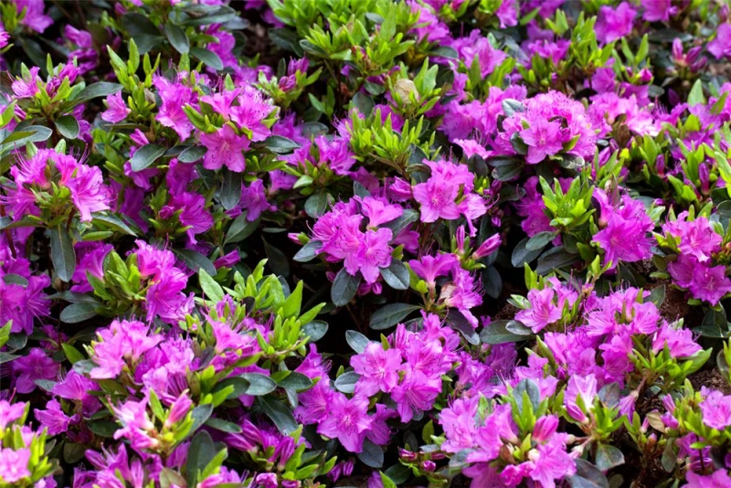 Die Japanische Azalee ‚Königstein‘ (Rhododendron obtusum) bringt von Mitte Mai bis Ende Mai ein wahres Meer aus violetten Blüten hervor. Dieses breit, kompakt wachsende Gehölz erreicht gewöhnlich eine Höhe von 40 – 60 cm und eine Breite von 60 bis 80 cm. Ein halbschattiger (bis schattiger) Standort und ein durchlässiger, nährstoffreicher, saurer Boden schaffen optimale Bedingungen für ein gesundes Wachstum. Die Japanische Azalee ‚Königstein‘ ist gut frostverträglich.