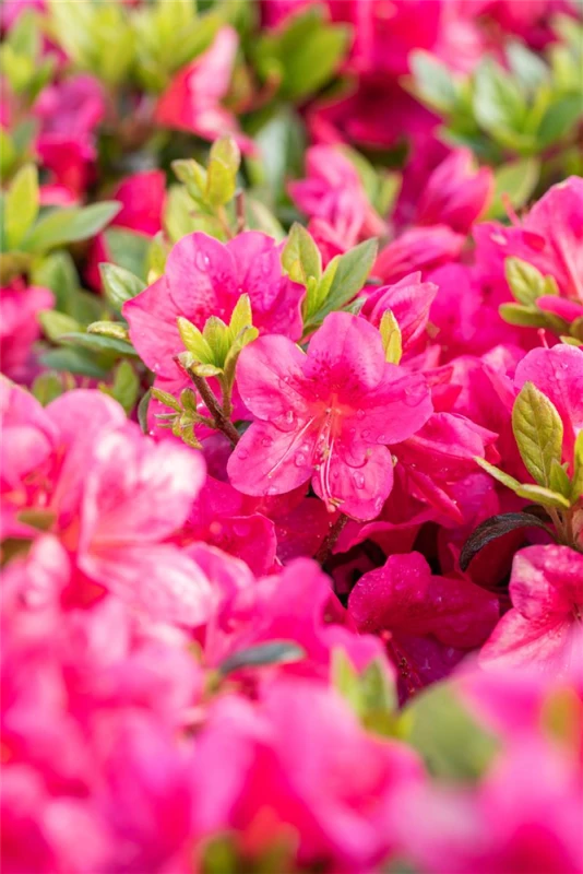 Die Japanische Azalee ‚Little Red‘ (Rhododendron obtusum) bringt von Mitte Mai bis Mitte Juni ein wahres Meer aus roten Blüten hervor. Dieses aufrecht, locker wachsende Gehölz erreicht gewöhnlich eine Höhe von 60 – 80 cm und eine Breite von 0,8 bis 1 m. Ein halbschattiger (bis schattiger) Standort und ein durchlässiger, nährstoffreicher, saurer Boden schaffen optimale Bedingungen für ein gesundes Wachstum. Die Japanische Azalee ‚Little Red‘ ist gut frostverträglich.