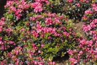 Die Japanische Azalee ‚Rosinetta’® (Rhododendron obtusum) bringt von Ende Mai bis Mitte Juni ein wahres Meer aus rosafarbenen Blüten hervor. Dieses kompakt, rundlich wachsende Gehölz erreicht gewöhnlich eine Höhe von 50 – 60 cm und eine Breite von 70 bis 80 cm. Ein halbschattiger (bis schattiger) Standort und ein durchlässiger, nährstoffreicher, saurer Boden schaffen optimale Bedingungen für ein gesundes Wachstum. Die Japanische Azalee ‚Rosinetta’® ist gut frostverträglich.