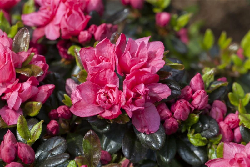 Japanische Azalee ‚Rosinetta’® ist ein kompakt und rundlich wachsender Zwergstrauch. Sie erreicht gewöhnlich eine Höhe von 50 – 60 cm und wird ca. 70 – 80 cm breit.