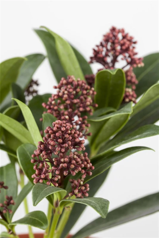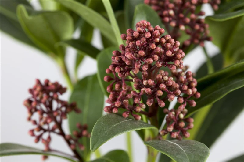 Skimmia japonica ‚Rubella‘ ist ein Flachwurzler.