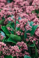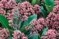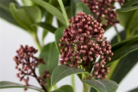 Skimmia japonica ‚Rubella‘ gedeiht auf allen sauren, humosen und genügend feuchten Böden.