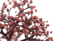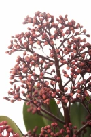 Japanische Blütenskimmie ‚Rubella‘ ist ein buschig und kompakt wachsender Kleinstrauch. Sie erreicht gewöhnlich eine Höhe von 0,6 – 1 m und wird ca. 0,6 – 1,5 m breit. Langsam wachsend. In der Regel wächst sie 10 – 20 cm pro Jahr.