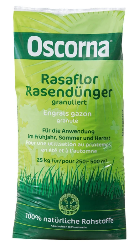 Organischer NPK-Dünger 8-4-5. Ein biologischer Langzeitdünger, der für ein gesundes, kraftvolles Gräserwachstum sorgt. Führt zu einem sattgrünen, strapazierfähigen Rasen. Anwendung: Pro Jahr dreimalige Düngung: Erste Düngung: März/April 50 g/qm. Zweite Düngung: Juli/August, Nachdüngung für Nährstoffnachschub. Dritte Düngung: Okt./Nov., wichtigste Düngung nach dem letzten Schnitt im Herbst. Es empfiehlt sich nach der Düngung kräftig zu wässern. Letzte Düngung sorgt dafür, dass der Rasen grün aus dem Winter kommt.