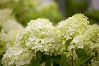 Die Rispenhortensie ‚Limelight'(s) (Hydrangea paniculata) ist ein aufrechter Strauch, der weiße, in Rispen angeordnete Blüten mit einem angenehmen Duft hervorbringt. Sie erscheinen von August bis Oktober. An einem sonnigen bis halbschattigen Standort mit durchlässigem, humosem Boden erreicht sie gewöhnlich eine Höhe von ca. 2,5 m und wird ca. 2,5 m breit.
