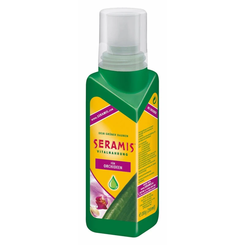 Besonders auf den Bedarf von Orchideen abgestimmt. Liefert alle lebenswichtigen Nährstoffe und wertvolle Spurenelemente. Bei jedem 2. Gießen ins Gießwasser geben, im Winter wird nur bei jedem 4. Gießen. Vorteile Um Ihre Orchideen bestmöglich mit allen benötigten Nährstoffen zu versorgen, hat SERAMIS® eine spezielle Vitalnahrung für Orchideen entwickelt. Die flüssige Vitalnahrung wird bei jedem zweiten Gießen einfach mit ins Gießwasser gegeben. Dabei fördert sie die Abwehrkräfte Ihrer Orchideen und sorgt für ein gesundes Wachstum sowie für eine langanhaltende Blütenpracht. Die SERAMIS® Vitalnahrung für Orchideen beinhaltet alle lebenswichtigen Nährstoffe und wertvolle Spurenelemente.
