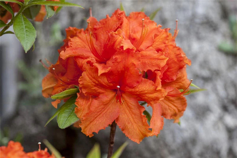 Die Sommergrüne Azalee ‚Golden Eagle‘ (Rhododendron luteum) bringt von Ende Mai bis Mitte Juni ein wahres Meer aus orangefarbenen Blüten hervor. Dieses aufrecht, verzweigt wachsende Gehölz erreicht gewöhnlich eine Höhe von 1,6 – 1,8 m und eine Breite von 1,4 bis 1,6 m. Ein halbschattiger (bis schattiger) Standort und ein humoser, kalkfreier Boden schaffen optimale Bedingungen für ein gesundes Wachstum. Die Sommergrüne Azalee ‚Golden Eagle‘ ist gut frostverträglich.