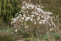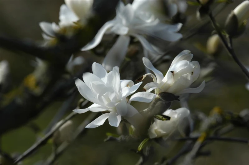 Die Sternmagnolie ‚Royal Star‘ (Magnolia stellata) ist ein buschiger, breiter Strauch, der weiße, sternförmige Blüten hervorbringt. Sie erscheinen von März bis April. An einem sonnigen, windgeschützten Standort mit durchlässigem, humosem, nährstoffreichem Boden erreicht sie gewöhnlich eine Höhe von ca. 3,5 m und wird ca. 3 m breit.