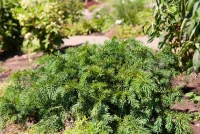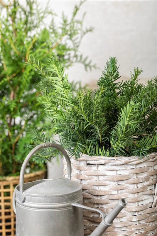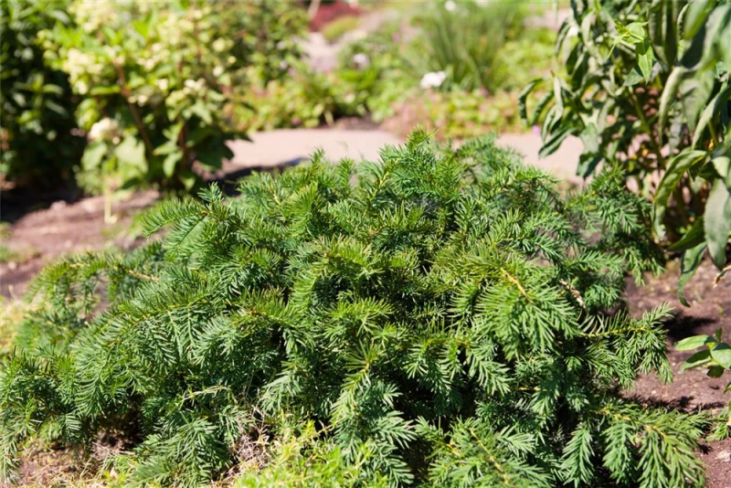 Ein Rückschnitt kann ganzjährig erfolgen, allerdings sollte nie übermäßig viel geschnitten werden. Triebe mit grünen Nadeln sollten bleiben, bis zwischen Juni und August der Formschnitt durchgeführt wird.