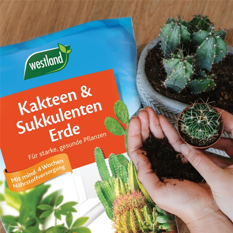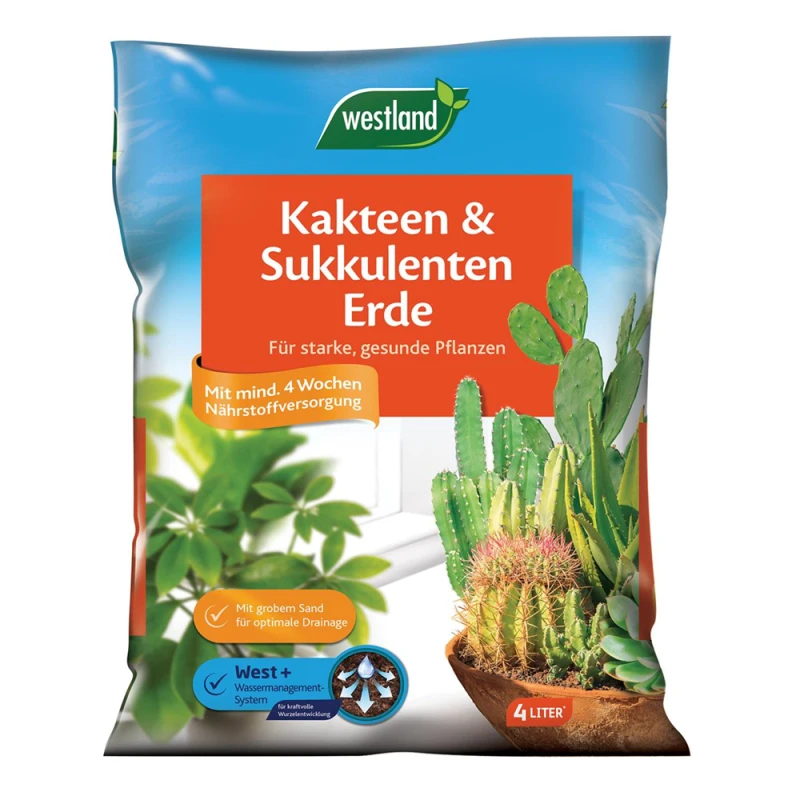 Die Westland Kakteen & Sukkulentenerde enthält eine ideal abgestimmte Nährstoffmixtur. Grober Sand sorgt für eine effektive Wasserführung. Das beigemischte Tongranulat und die West+ Technologie bilden ein nachhaltiges Wassermanagement-System aus natürlichen Rohstoffen, welches das Wurzelwachstum stärkt und eine gleichmäßige Verteilung von Gießwasser und Nährstoffen gewährleistet. Dies sorgt für ein gesundes Wachstum und vitale Kakteen und Sukkulenten.