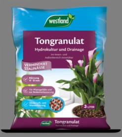 Das Westland Tongranulat bietet Hydrokulturpflanzen zuverlässigen Halt und beste Voraussetzungen für ein optimales Wachstum. Der schonend gebrannte Ton ist strukturstabil und langjährig verwendbar. Ein Umtopfen von Hydrokulturpflanzen in das mineralische Tongranulat ist unabhängig von Alter und Größe der Pflanze möglich. Als Drainage bei Erdpflanzen verhindert es wirkungsvoll Staunässe und eine damit oft einhergehende Wurzelfäule. Die ausgewählten Rohstoffe entsprechen den hohen Anforderungen der Qualitätssicherung von Westland.