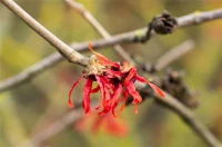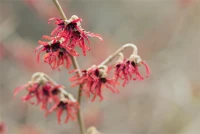 Die Zaubernuss ‚Diane‘ (Hamamelis x intermedia) ist ein aufrechter, breiter Strauch, der rote Blüten mit einem leichten Duft hervorbringt. Sie erscheinen von Januar bis Februar. An einem sonnigen bis halbschattigen Standort mit durchlässigem, saurem Boden erreicht sie gewöhnlich eine Höhe von ca. 3 m und wird ca. 2 m breit.